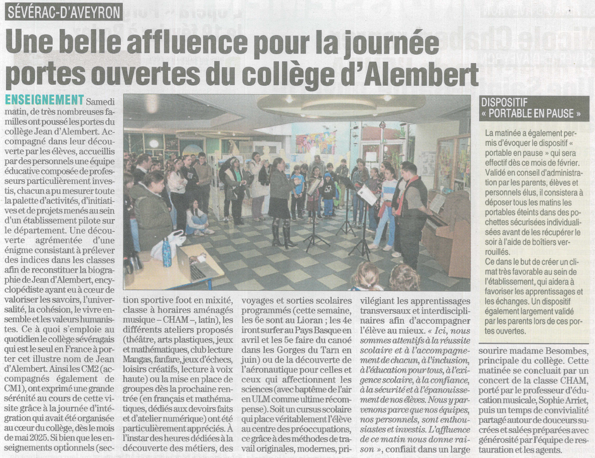 JOURNEES PORTES OUVERTES 2026 : Article du Journal de Millau