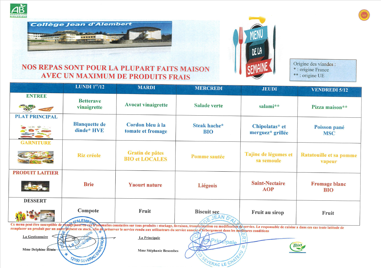 RESTAURATION SCOLAIRE (Menu)