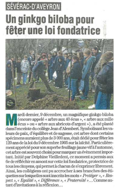 Un arbre pour commémorer les 120 ans de la loi : une occasion de promouvoir le principe de laïcité qui sous-tend les valeurs de la devise républicaine.